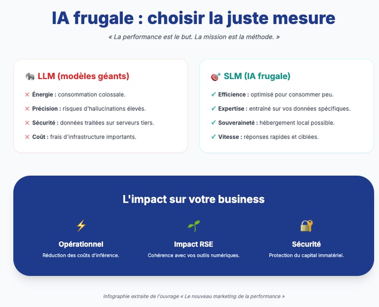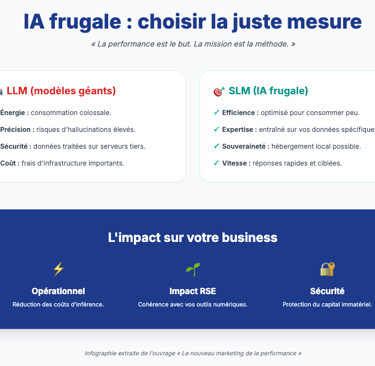 La Souveraineté et Sécurité : Un modèle frugal est plus facile à auditer et à sécuriser. C’est la réponse idéale aux exigences du RGPD et à la protection de votre capital immatériel.